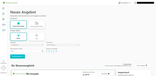 Mit nur wenigen Klicks Angebote für Ihre potenziellen Kund*innen erstellen und mittels des integrierten Tarifvergleichs direkt den Preisvorteil zum alten Tarif darstellen.
