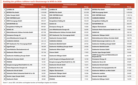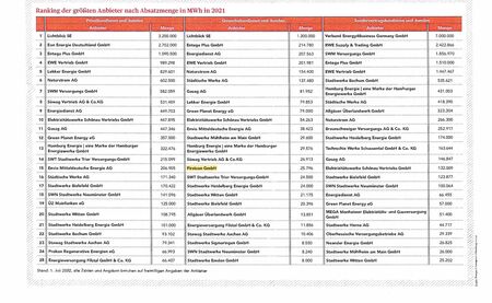 In der Ökostromumfrage der Fachzeitschrift „Energie & Management“, die seit 2005 durchgeführt wird, werden jährlich die Kundenzahlen und Absatzmengen verschiedener nachhaltiger Energieanbieter gegenüberstellt.